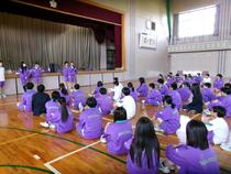 1校時、1年生と2年生が合同で練習を行いました。各次第での動作や式歌、校歌の練習をしました。しっかりとした態度で、いつも歌っている校歌も完璧でした。