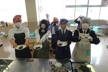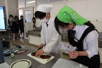 「お菓子づくりコンテスト2日目」は、1年1組が行いました。本日のメニューは、「チョコシフォンケーキ」、「ガトーショコラ」、「フライパンバナナケーキ」、「チョコバナナクレープ」、「バームクーヘン風」、「ホットケーキ」でした。自分たちが作成したレシピを見ながら、仲良く調理していました。