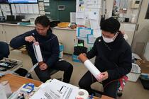 昨日の生徒下校後の放課後、体育を担当する若手教員2名が教材を作成していました。保健分野「喫煙の害と健康」の指導を行うにあたり、自作の大型たばこ模型を作り、副流煙がどのぐらい広がるのかを実感できるように工夫をしていました。