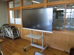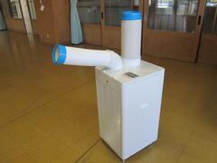 本校には、電子黒板2台とスポットクーラー4台が配分されました。電子黒板は現在モニターを使用している学級に配置し、学習に役立てたいと思います。スポットクーラーは、気温の高い時期になりましたら、体育館や配膳室等で活用していきたいと考えています。