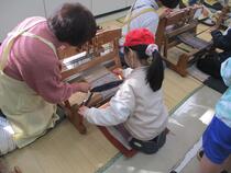 3年生は社会科「市の様子と人々のくらしのうつりかわり」の学習で、歴史民俗資料館の見学に行きました。職員の方から昔の暮らしについてのお話を聞いた後、様々な昔の道具を見学しました。今使っている道具との違いにびっくりしていました。また、当時の道具を使って機織りを体験し、その難しさや織物ができあがっていく楽しさを味わっていました。