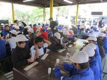 この授業ではのこぎりや金づちを使用するため、子供たちの安全のために、保護者のボランティアの皆さんに協力いただきました。