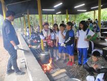 2日目は野外炊飯でカレーライス作りを行い、活動班ごとに役割を分担して調理を行いました。食器を洗う人、にんじんやジャガイモなどの食材を切る人、かまどで火をおこす人などそれぞれの役割をしっかり果たし、どの班もおいしいカレーライスを作ることができました。
