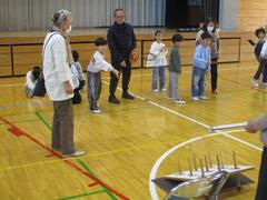 馴柴まちづくり協議会の皆さんや保護者の方を交えて、2年生の昔遊び交流会が行われました。2年生は、けん玉と輪投げを楽しみ、上手にけん玉がお皿にのったり、投げた輪がきれいに的の棒に入ったりしたときには、大はしゃぎで喜んでいました。どちらもなかなかコツがつかめに子には長寿会の方が丁寧に教えてくださり、どんどん上達していました。