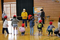 台風接近のため延期されていた、竜巻対応の避難訓練を行いました。子供たちは避難の合図を聞くとすぐ、窓から離れ、頑丈な壁に囲まれた場所で、背中を丸め頭を守る「亀のポーズ」をとりました。最近でも静岡で大きな竜巻被害が発生するなど、いつどこで竜巻が発生してもおかしくなくなりました。学校の中だけでなく、家にいるとき、外で歩いているとき、お店にいるときなど、どこにいても竜巻に遭遇したときの避難の仕方を身に付けてほしいと思います。