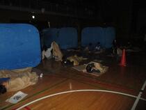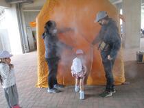 煙体験では、無害な煙で満たしたテントの中を火事場に見立てて通り抜けました。煙で先が見えない中避難することの難しさを体験しました。消火訓練では、消火にの扱い方や噴射の姿勢などを学び、火に見立てた的を狙いましたが、なかなか上手に当たらずに苦戦しているようでした。避難所設営訓練では、指示された区画に分かれ、配給された段ボールベットや簡易テントの組立などを行いました。実際の避難所では、毛布や段ボールベットなども全員に行き渡らないこともあり、そのようなときにはどうすればいいのか、自分の家から避難所に持って行った方がいいものは何かなど、実際に災害起きたときのことを考えながら体験することができました。