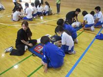 実際の体験では、流通経済大学の学生の皆さんからルールの説明を聞いた後、いくつかのグループに分かれて指導を受けながら競技を楽しみました。はじめはボッチャ用のボールをうまく投げることができなかった児童も、回数を重ねる内に、コツをつかみコントロールできるようになってきました。体験後は、「初めての体験だったが、とても楽しいスポーツだとわかった。」「パラリンピックの種目を体験できてよかった。」など、よい体験になったという感想が、多くの児童から聞かれました。