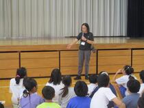 たばこやお酒、違法薬物など、使用してしまうことでどんな危険があるのか、体にどんな影響があるのかを具体的な例を挙げながら話してくださいました。子供たちは真剣に話を聞き、質問の時間には、多くの子供たちが手を上げて質問をしていました。