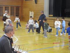 馴柴まちづくり協議会の皆さんや保護者の方を交えて、2年生の昔遊び交流会が行われました。2年生は、けん玉と輪投げを楽しみ、上手にけん玉がお皿にのったり、投げた輪がきれいに的の棒に入ったりしたときには、大はしゃぎで喜んでいました。どちらもなかなかコツがつかめに子には長寿会の方が丁寧に教えてくださり、どんどん上達していました。