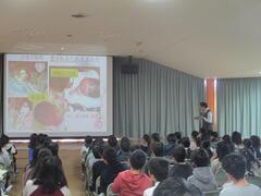 12月6日(金曜日)、龍ケ崎済生会病院産婦人科医の先生をお招きし、5年生を対象に「いのちの講演会」を開催しました。事前のアンケートではあまり興味がないと答えていた児童もいましたが、講演が進むにつれ、真剣に聞き入っている様子が見られました。