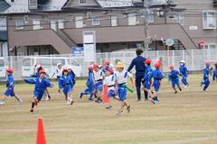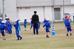 はじめは、ボールを使わずに体の使い方を学ぶために、タグを使った鬼ごっこからはじめ、徐々にボールの投げ方、つかみ方、どうやって先へ進めるかなど流大生に丁寧に指導していただきながら、タグラグビーのやり方を覚えていきました。後半には、実際に試合を行い、チームメイトと声を掛け合い協力しながら活動することができました。
