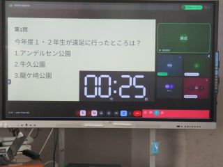 昼休みを利用して、縦割班活動が行われました。今月は「馴馬台小学校クイズ大会」でした。児童委員を中心にオンラインで問題を出題し、班のリーダーが解答を入力して送ります。解答を送るスピードも得点に反映されるので、どの班も協力して答えを考えていました。優勝は7班でした。7班のみなさんには児童委員より賞状が贈られました。白熱した、楽しい時間となりました。