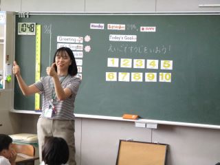 1、2年生は年間10回程度の外国語の授業を行うことができます。1年生の4回目の外国語の授業は「えいごですうじをれんしゅうしよう」です。1から10までの数字を歌やクイズ、児童同士のやりとりを通して学習しました。本校ALTのマリア先生が、毎回楽しいクイズや活動を取り入れて授業を行っているので、45分があっという間に過ぎていきます。「もう1回歌が歌いたい!」とリクエストする児童も見られました。