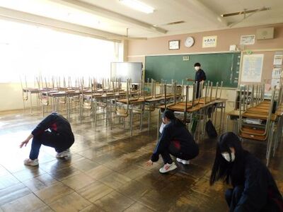 寒い中、3年生が黙々と雑巾がけをする姿が見られました。