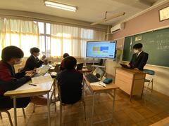 今日はそのまとめとして発表会を行い、自分たちで作ったスライドを使って発表しました。