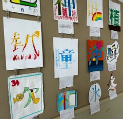美術室前の廊下には、生徒たちの作品が展示されています。