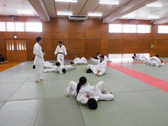 10月から体育では、柔道の学習が始まりました。写真は寝技をかけあう様子です。