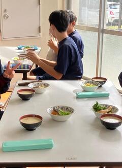 本日は2年生で調理実習が実施され、鮭のムニエルをつくりました。生き生きと前向きに活動することができました。