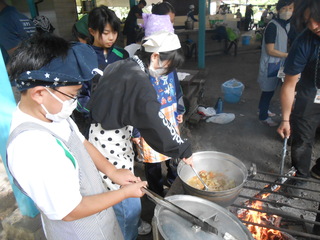 グループごとに、調理器具の準備や火おこし、食材の下ごしらえにカレーの調理等、ほとんどの工程を自分たちの力でやりとげました。