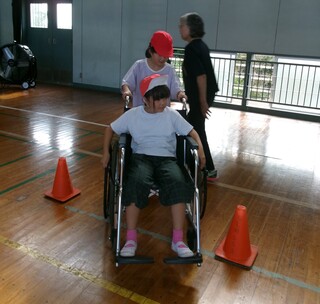 2つ目は、市の福祉協議会とボランティアの方を招き、3年生が福祉体験を行いました。本日は、車いすの体験でした。子供たちは、福祉協議会やボランティアの方の話をよく聞き、安全に車いすの体験をすることができました。