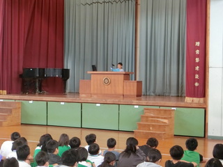 校長先生からは、いじめをしないようにしてもらいたいということ、話を最後まで聞くようにしてもらいということの2つについて話がありました。
