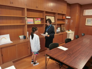 本日は、5年生と4年生の児童数名が表彰簿を受け取りました。