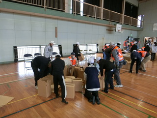 地域の人と協力して段ボールベッドを組み立てました。