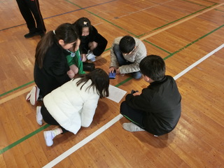 通学班ごとに集まって話し合いました。