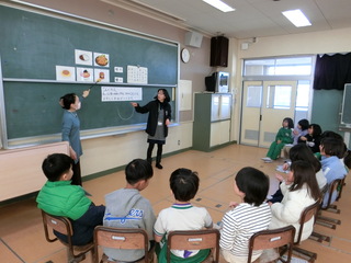 市の福祉協議会と、ボランティアの方が来校し、手話を使った自己紹介や、簡単な挨拶などを学びました。