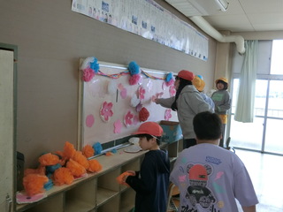 18日の水曜日に、4、5年生が卒業式に向けて、会場の準備や6年生の教室の飾り付けを行いました。