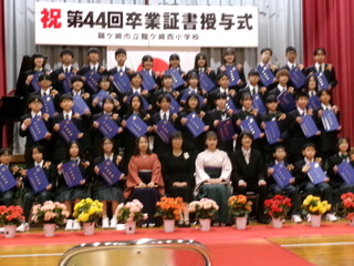 この1年間、卒業生は西小のために、多方面で頑張ってくれました。卒業生の何事にも一生懸命に取り組む姿、まぶしい笑顔、そして、みんなで協力し合う姿は、西小にとって今後受け継いでいきたい財産となりました。卒業してしまうのはとても寂しいですが、次のステージで活躍してくれることを期待しています。