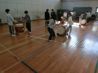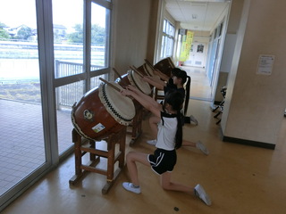 今週末に発表を控えている龍神太鼓クラブは、掃除から昼休みにかけて、本番を想定した練習を行っています。