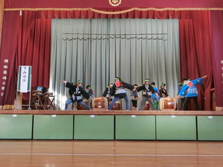 本日の冬休み前集会の後、龍神太鼓クラブによる校内での発表を行いました。