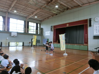 本日の3時間目に、全校児童で体育館に集まり、みのり集会を開きました。
