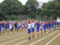 今日の1校時、龍の子紅白大合戦に向けた全体練習が行われました。第1回目の全体練習ということもあり、はじめに担当の先生から練習の流れや心構えについてお話がありました。今日の練習は、開閉会式の動きの確認や準備体操といったものが中心でした。1校時で曇り空ということもあり、ちょっと肌寒さが感じられる中での練習でしたが、リーダーの6年生の動きをよく見ながら、どの学年も意欲的に練習に参加していました。