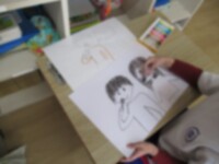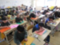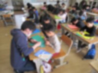 1年生が、来年入学してくる新入生のためにさまざまな準備を進めています。今日は、入学式の日の教室を飾るために、紙のお花を作ったり画用紙に絵を描いたりしました。お花はグループごとに色を決めて、赤、白、青、黄、緑などいろいろな色の花を作りました。また画用紙には、新入生に早く学校に慣れてもうために小学校での生活の様子を描きました。1年生から次の1年生へ……。良い伝統が引き継がれていると感じました。