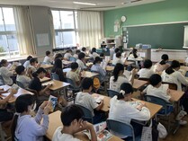 1年生の音楽では、鍵盤ハーモニカの学習が始まります。この日は、講師をお招きし、講習会を開催しました。鍵盤ハーモニカの構造や音の出し方などを学習しました。実際に音が出ると楽しそうな表情を見せていました。これからたくさんの演奏ができるといいですね。