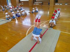 体育の授業の時間に、マット運動に取り組みました。前まわり、後まわり、指示倒立、川とびの練習をしています。運動しやすい気温になったので、子供たちは嬉しそうに活動に取り組んでいます。10月に入るとヤハリンピックの練習が始まります。季節の変わり目ですので、体調に気を付けていきたいと思います。