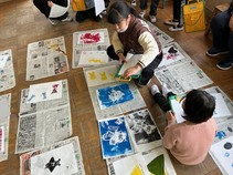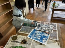 3年生の図画工作では、版画づくりに取り組んでいます。イメージした形を紙などで版をつくりました。出来上がった版にインクを塗って、バレンでこすり、作品をつくりました。刷り上がった作品を確認し、修正を図りながらさらに良い作品の完成を目指しました。出来上がった作品を友達と見合いながらよさを認め合いました。工夫をこらした素敵な作品が揃っています。