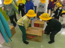 1年生の食育で給食センターに行きました。今日の給食を作っている様子の見学、実際に使っていた鍋とスパテラで混ぜる体験、実際に野菜が入った段ボールを想定した約20キログラムの段ボールを持ち上げる体験などを行いました。毎日、重い段ボールを運んだり、たくさんの量を調理したりしていることに気付き、とても驚いている様子でした。本日の給食は、給食センターで働く人への感謝の気持ちを込めて、美味しくいただきました。給食センターのみなさん、ありがとうございました。