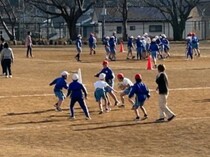 5年生の体育でタグラグビーの学習を行いました。流通経済大学のみなさんの指導のもと、ラグビーボールの扱い方を学んだり、1対1の攻防や仲間とパスをつないだりする活動を楽しんだりしました。不規則なボールを上手に扱ったり、相手との駆け引きや仲間との連携でパスを回したりすることができるようになりました。ミニゲームを行いながら、ラグビーの楽しみを知ることにができました。流通経済大学の皆さん、ご指導ありがとうございました。