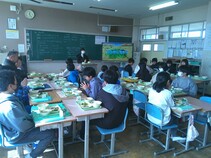 6年生が校長先生を招待して給食を一緒に食べました。事前に考えた質問を校長先生に答えてもらったり、普段の何気ない話をしたりするなど、楽しい時間を過ごしました。卒業を前にして、新たな思い出を作ることができました。