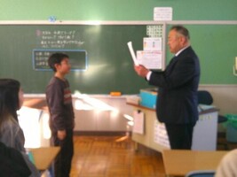 1月19日から1月30日の間で「なわとび週間」と題して、クラス毎に大縄跳びに取り組みました。クラスを半分に分けて、5分間でそれぞれが跳んだ回数を足して、何回跳べたのかを競いました。どうやったら回数を増やせるのか、一人一人が考えたことで、始まったころよりも最後の方が、どのクラスも記録が向上していました。校長先生から賞状をもらうことができ、とても喜んでいました。今年の最高記録は、5年1組で916回でした。結果以上に、クラスで一つの目標に向かって取り組めたことが大切です。これからも、外遊びや運動を進んで行っていけるよう、支援していきます。