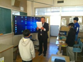 株式会社ニューライフ会長様より、児童の教育環境の向上のために電子黒板を2台寄贈していただきました。さらにICT機器の活用を推進させ、教育の質の向上をめざします。ありがとうございました。