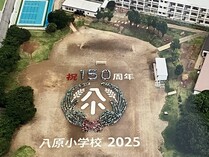 今年は八原小学校創立150周年です。150周年を記念して、航空写真撮影を行いました。全校児童教職員で人文字撮影と集合写真撮影を、各学級でも記念写真撮影を行いました。みんなで協力して一つのことを成し遂げるよい機会となりました。出来上がった画像を見ることが楽しみです。